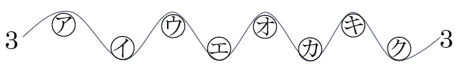 ㋐↗2↘㋑↗3↘㋒↗4↘㋓↗5↘㋔↗㋕ とすると